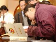 A woman reads the full name list of the members of the 10th CPPCC, March 1, 2004. The book has been put on counters at the CPPCC Hall and the press center for the NPC and CPPCC sessions at the Great Hall Hotel near the Great Hall of the People.