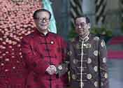 Chinese Prsident Jiang Zemin and Vietnamese Prime Minister Phan Van Khai in Chinese-Style Costumes.(10/21/2001)