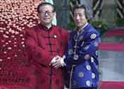 | Chinese Prsident Jiang Zemin and Philippine President Gloria Macapagal-Arroyo in Chinese-Style Costumes.(10/21/2001) |