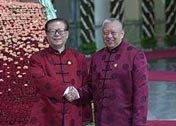 | Chinese Prsident Jiang Zemin and Singapore Prime Minister Goh Chok Tong in Chinese-Style Costumes.(10/21/2001) |