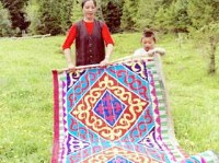 With a 76 percent of them leading such a life as they are now they have come to live with a per-capita income of RMB 1,750yuan from past RMB 380yuan/year. Photo shows a herdswoman selling traditional Kazakh tapestries to tourists.