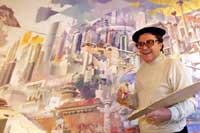 Croatian-born Australian Billich, flaming red blazer and Chinese-knot neckwear mesmerizing passers-by wherever he goes, has been in Beijing to both paint for, and present to, Beijing's 2008 Olympics bid committee, BOBICO, a huge cityscape montage of the capital. Titled Beijing Millennium Cityscape, the work was undertaken at the invitation of Australia's Canberra City government to express its support for Beijing's bid.