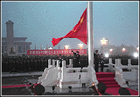 More than 200,000 people from different walks of life gathered at Tiananmen Square in downtown Beijing to watch the flag-raising ceremony today, the National Day celebrating the 51st anniversary of the People's Republic of China (PRC).