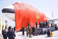 United Parcel Service (UPS), the world's largest express carrier and package delivery company, celebrated the maiden voyage of its first cargo aircraft directly flying to China at an inaugural ceremony Friday at Ontario International Airport, California.