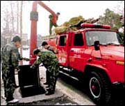 It was the first time for the special visit. Local residents came to the stations in spite of snow. They took materials on how to prevent and put out fire, talked with fire-fighters on how to protect and rescue themselves when meeting with a fire.