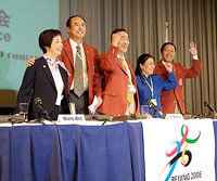 The five candidate cities faced the media in turn holding separate press conferences, the last International Olympic Committee (IOC) authorized media occasion for the candidate cites before this evening's vote. The press hall was packed when the Beijing delegation -- which presented fourth behind Osaka, Paris and Toronto -- stepped into the hall.