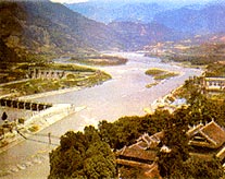 Dujiangyan was built in BC 256 in southwest China's Sichuan Province along the upper reaches of the Minjiang River, a major branch of the Yangtze River. The scheme irrigates about 672,700 hectares of farmland and provides water for industrial and household use in 50 large and medium-sized cities.