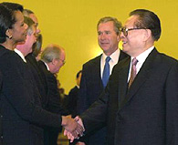 "The Chinese side is ready to join the US side in reflecting on the past and looking to the future, increasing exchanges and cooperation, and enhancing understanding and trust," Jiang said when asked by a reporter to comment on Sino-US relations over the past 30 years, while meeting the press together with visiting US President George W. Bush.
