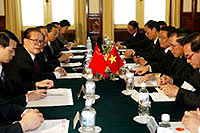General Secretary of the Central Committee of the Communist Party of China (CPC) and Chinese President Jiang Zemin held talks with General Secretary of the Communist Party of Vietnam (CPV) Central Committee Nong Duc Manh and Vietnamese President Tran Duc Luong in Hanoi Wednesday afternoon.