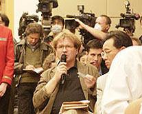 The executive vice minister of the Ministry of Health Gao Qiang and vice minister Zhu Qingsheng attend the press conference to introduce the latest SARS cases, as well as the measures the Chinese government has taken to prevent the spread of the disease.