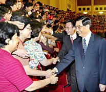 Hu made the remark in Beijing Wednesday when talking with the newly-elected leaders of the All-China Women's Federation (ACWF) and some of the delegates who attended the Ninth National Women's Congress of China.
