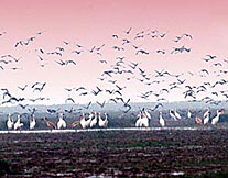 The end of 2002 saw a four-year relocation project completed, which enlarged the area of the lake to 5,100 square kilometers, providing more space for the birds to find food.