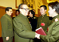 First he gave an analysis of the current world situation. Then Jiang Zemin stressed that the PLA soldiers and the leaders at all levels should keep in mind their responsibility of providing a staunch safeguard for national security as well as the construction of a well-off society.