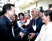 He first inspected the People's Hospital of the county and a health center at a nearby town. He asked questions about the preparation work for SARS prevention in these two places and chatted with villagers.