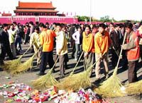 The thousands of visitors who throng Beijing's Tian'anmen Square during the "Golden Week" leave behind tons of litter every day over the weeklong holiday.