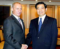 Putin agreed with Hu's views of current Russia-China relations. He said the Good-Neighborly Treaty of Friendship and Cooperation, signed in July, 2001, laid a legal foundation for both countries to develop their strategic partnership of cooperation in the new century.