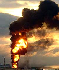 Television pictures showed video of a fire and smoke billowing near an Idemitsu Kosan Co oil storage facility at a refinery in Tomakomai, a coastal city in southern Hokkaido.