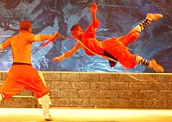 Shaolin kung fu is not simply a genre of martial arts, but a comprehensive system of Zen Buddhism that incorporates martial arts as part of its discipline. The physical prowess and strength of the monks is awe-inspiring, but no less is the sheer dance-like beauty of the their movements.