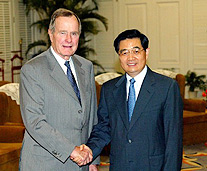 When discussing Sino-US relations, Hu said the two sides have made fresh progress in trade, anti-terrorism and other affairs in recent years, which accords with the interests of both sides and is conducive to the world peace and stability.