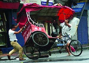 Typhoon Rananim did not pound Shanghai after all, instead heading westwards to the neighboring Jiangxi Province, where it arrived at about 11 AM on Friday.