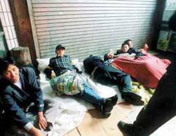 Gao said that the extras are paid only 20 yuan (US$2.40) for each job, and rarely have more than 10 chances each month to get some work. With income prospects like that, they can hardly afford to pay rent in a metropolis like Beijing. Many of them sleep in the open, and some have to sell blood to eke out a living.