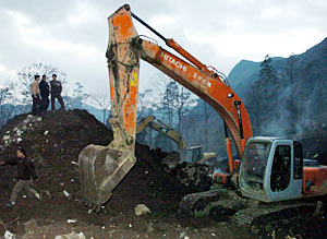 Large excavating machines and more than 1,000 rescuers were trying to dig through the mud, according to Xinhua, which said the operation was suspended later Saturday for fear of more slides.