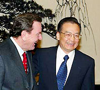 Premier Wen Jiabao and German Chancellor Gerhard Schroeder, who is on a three-day state visit, attended the signing ceremony after their scheduled talks.