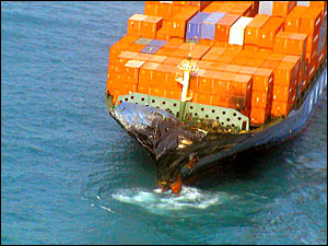 One of the ships, the German-registered MSC Ilona, sustained damage to an oil storage area and began leaking heavily.