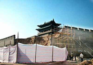 Zhao Changben, the veteran specialist on the ancient walls and the former deputy superintendent of Pingyao's Cultural Relics Administrative Office accepts Li's explanation. He said the ancient wall has had 26 restorations since being built. Most of those were of a high quality except that in 1850 when the ruler's aim was defending the Taiping Rebellion -- they just added to the height of the walls without reinforcing them.