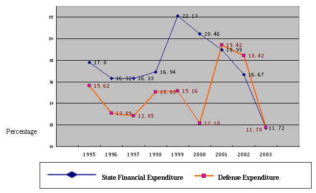 In the past two years, the percentages of China's annual defense expenditure to its GDP and to the state financial expenditure in the same period have remained basically stable. For most of the years since the 1990s, the growth rate of China's defense expenditure has been lower than that of the state financial expenditure.