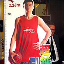 As the Danish Prime Minister announced the appointment of basketball star Yao Ming, the audience was surprised to see a huge poster of the 227-centimeter (7’5") Houston Rockets center brought forward. Yao Ming is in the United States preparing for a game and was unable to attend the opening ceremonies.
