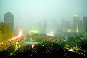With a maximum temperature of 37 degrees centigrade, the city was broiled by the scorching sun all the day. But a sudden thunderstorm came at about 6:00 p.m. and the city was bathed in torrent.