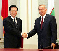 Hu invited Uzbek President Islam Karimov to visit China and the latter accepted the invitation.