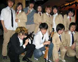 Cosplayers appear as characters from the Japanese film Battle Royale