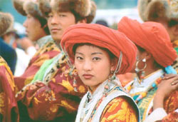The unique dress of the Amdo Tibetans demonstrates their diligence and wisdom in the long course of seeking ways to add color to life in their demanding land.