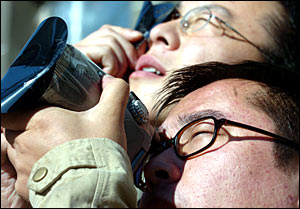 Many astronomy lovers in the cities of Harbin and Changchun witnessed it using techniques carefully designed to protect their eyes from the sun's rays.