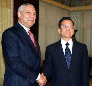During his meeting with Powell, Wen said he appreciated the contributions the secretary of state had made to promoting Sino-US relations.