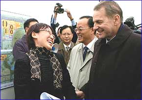 Along with a group of IOC officials including Hein Verbruggen, president of the IOC's Coordination Commission for the 2008 Olympics, Rogge also watched a promotion film about the history, present and future of the Chinese capital.