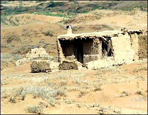 The “l(fā)ake district” averages an annual 139 days of wind and dust. Twenty-nine of those days will see the wind pass the force eight mark, and 37 days will bring sandstorms with winds up to force eleven. Local farmers often get up in the morning to see sheep on the roofs of the houses and the courtyard walls disappeared, buried below the drifting sands. Seventy percent of the land of the five villages and towns is now lost to the desert or blighted by saline-alkaline soil. Of the area’s 1.43 million mu (about 95,300 hectares) only 190,000 mu (12,700 hectares) are still under cultivation. The severe drought has led to the desert sands encroaching from the east, west and north at an average rate of 10 meters per year. Some individual dunes are advancing by up to 20 meters a year.