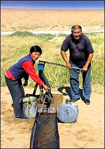 According to Chen Dexing, head of Minqin County, over-exploitation of groundwater in the face of the county’s water shortage is running at some 428 million cubic meters a year. He said, "Groundwater consumption is increasing dramatically. Underground water levels are dropping by some 0.5-1.0 meters per year. If depletion continues at this rate, the groundwater will run completely dry in 17 years."