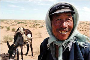 In some places, the arid conditions have become too harsh for people to make a living. They have been left with no choice but to move out. Chen Dexing, head of Minqin County, said that in the last few years more than 30,000 farmers have left their oasis homes to resettle elsewhere, pushed out by the drifting sands and water shortages.