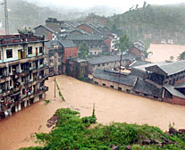 Officials with the provincial flood control office reported that downtown Dazhou -- the area that has suffered the most serious damage so far -- has been isolated by flooding, which caused cave-ins on urban roads and destroyed highways leading into the city.