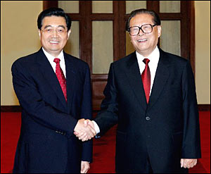 He went on to relinquish the state presidency he had held for 10 years at the annual full session of the National People's Congress, China's top legislature, in March 2003. Hu took over both positions.