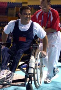 Meanwhile, at the Nikaia Olympic Weightlifting Hall, China's 2003 World Wheelchair Games champion powerlifter Wang Jian stopped Sydney Paralympics gold medalist