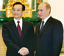 Wen expressed hope that China and Russia will strengthen cooperation in the energy resources industry, which has bright prospect and strong potential.