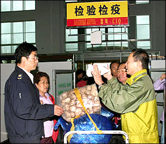 Up to April 1, Jilin provincial Inspection and Quarantine Bureau had sterilized 1,794 vehicles coming from the DPRK. Work staff seized 66 poultry and other potentially contaminated products from the frontier.