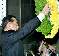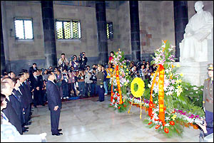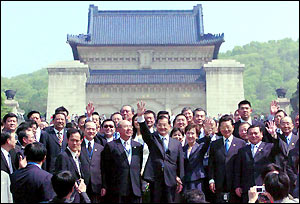The visiting chairman of the Kuomintang (KMT), Lien Chan, headed a 60-member delegation to the Mausoleum of Dr. Sun Yat-sen (1866-1925) at around 8:50 AM in Nanjing today.