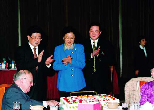 With Wang Zhaoguo, Liu Yandong and Yu Guilin in 2001.