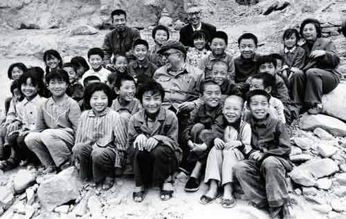 With children on the banks of the Yellow River on a revisit to the old anti-Japanese resistance bases in Shanxi in 1985.