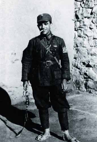 He is shown here at an anti-Japanese guerilla base wearing an Eighth Route Army uniform.